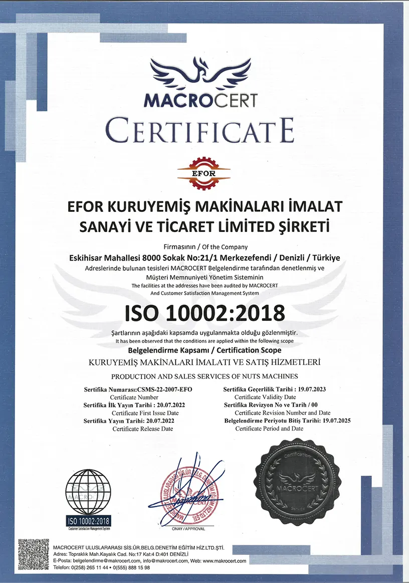 Efor Kuruyemiş Makinaları ile ihtiyaclarınız için en doğru makineyi seçebilirsiniz.
